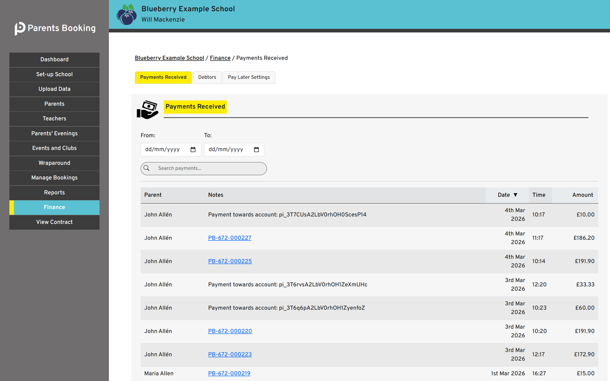 You will also find features for creating reports, automatically chasing parents who haven’t booked, RSVPs from parents, sophisticated finance systems and features that allow parents to pay for bookings later, pie charts, attendance registers, and built-in communication tools which facilitate better parent-teacher dialogue and parental engagement.